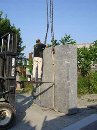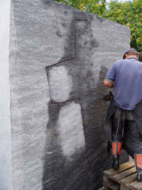 Aus einem ca. 9to schweren Steinblock wurde aufwändig das Kreuz herausgeschnitten. In dem Steinkreuz wurden die 96 katholischen Geistlichen die ihr Leben in Sachsenhausen lassen mussten, verewigt.